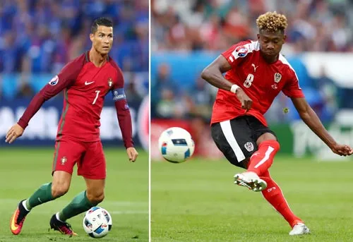 David Alaba (phải, Áo) sẽ chơi tấn công trước Bồ Đào Nha của Ronaldo