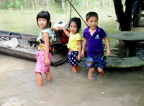 Học sinh xã Biên Giới, huyện Châu Thành, tỉnh Tây Ninh tạm nghỉ học vì lũ lụt. Ảnh: ĐẠI DƯƠNG