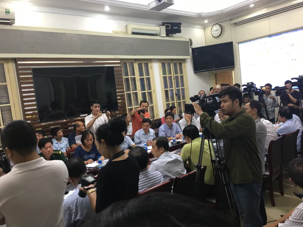 Ông Hoàng Đức Cường báo cáo tình hình cơn bão số 4 sẽ gây mưa lớn tận Trung Lào