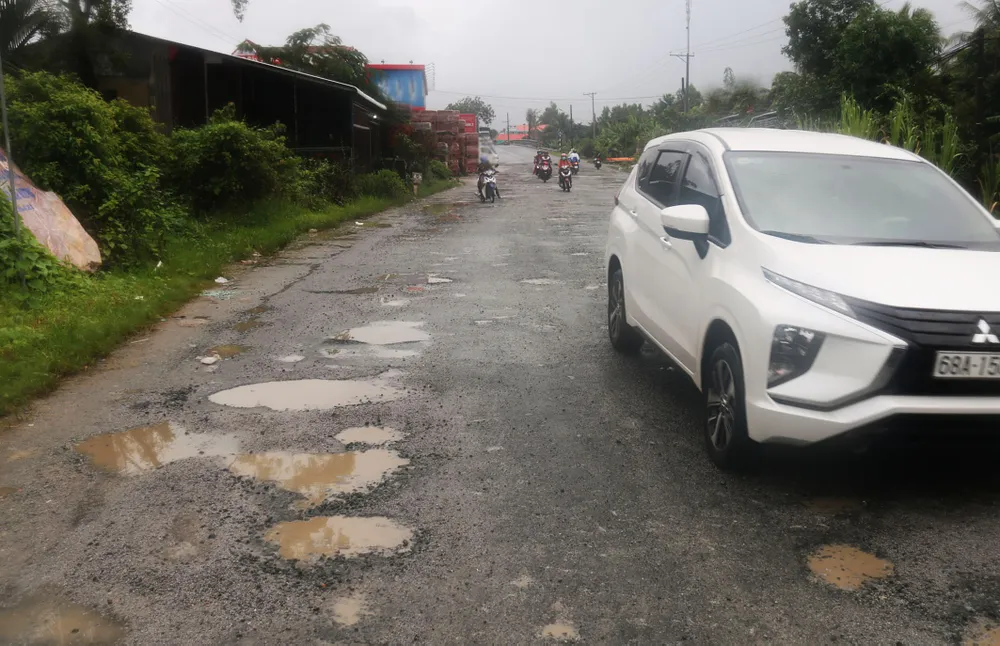 Quốc lộ 80 nối Rạch Giá với Hà Tiên (tỉnh Kiên Giang) liên tục xuống cấp, hư hỏng. Ảnh: QUỐC BÌNH