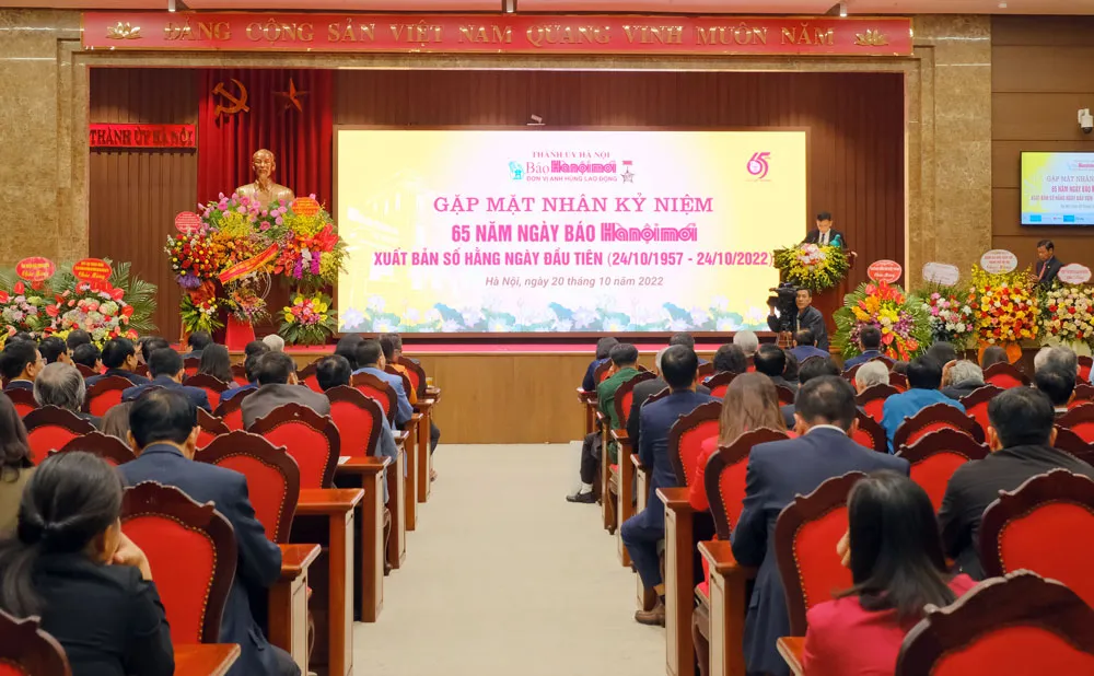 Chiều 20-10, tại trụ sở Thành ủy Hà Nội, Báo Hànộimới trang trọng tổ chức buổi gặp mặt nhân kỷ niệm 65 năm Ngày xuất bản số hằng ngày đầu tiên (24-10-1957 - 24-10-2022).