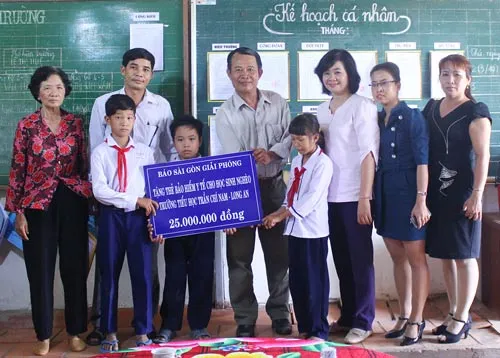 Cũng trong dịp này, Phó Tổng Biên tập Báo SGGP Lý Việt Trung đã trao 25 triệu đồng cho đại diện nhà trường (từ nguồn đóng góp của bạn đọc Báo SGGP) để mua Bảo hiểm y tế cho 36 em học sinh nghèo và ủng hộ trang bị cơ sở vật chất cho nhà trường.
