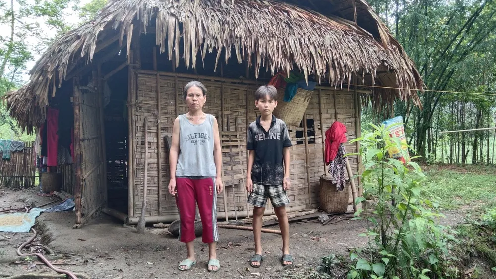 Bố mất, mẹ già yếu, em trai nghèo nên không giúp được chị. Thương tình, người dân bản Đôm 2 góp công chặt tre nứa, lá cọ dựng cho hai mẹ con một mái nhà che nắng che mưa. Qua thời gian nhà mục nát nên mỗi khi mưa lớn thì dột, mùa đông gió lùa vào rét căm căm, bão phải chạy đi ở nhờ.