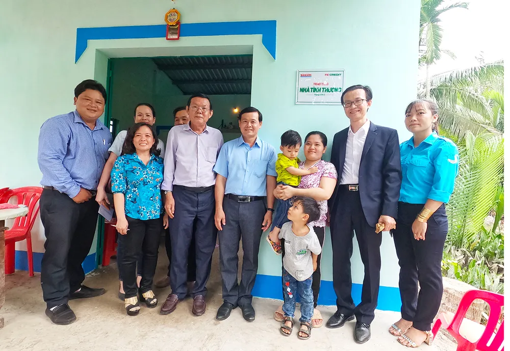Hộ chị Nguyễn Thị Hồng (ấp An Thuận, xã An Bình Tây, huyện Ba Tri) nhận nhà tình thương. Ảnh: PHONG LAM