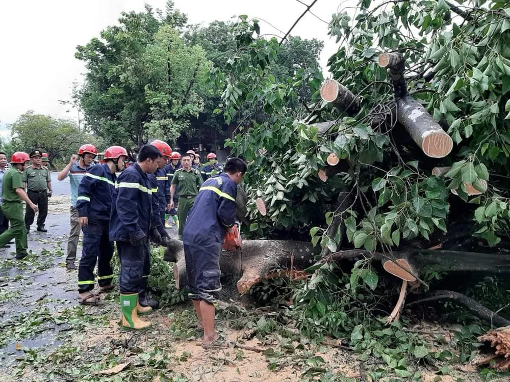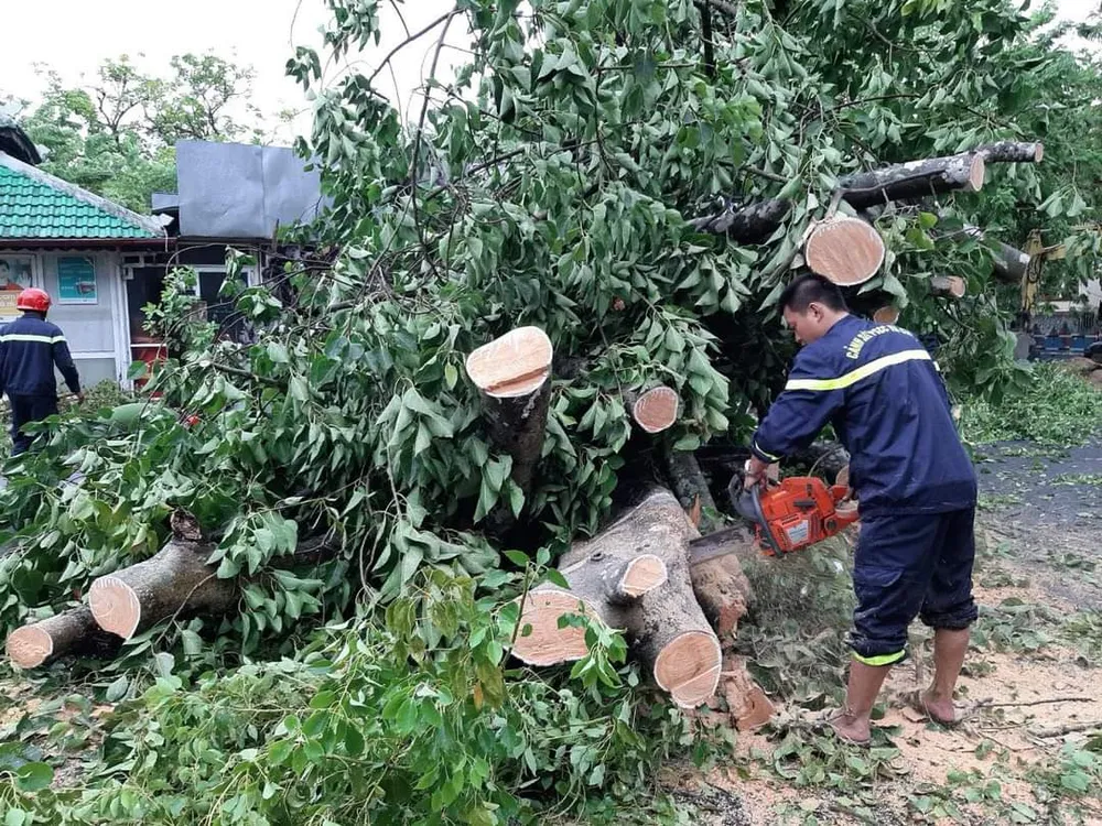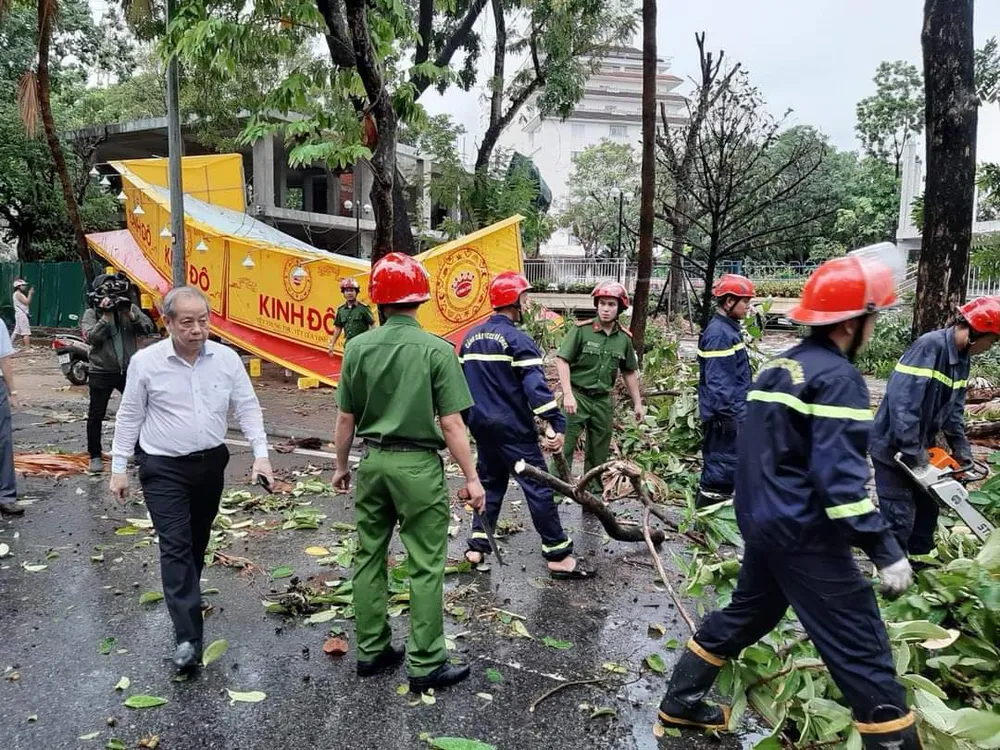 Gió lớn cũng làm cây xanh trên địa bàn TP ngã đỗ. Ảnh: NGUYỄN CƯỜNG