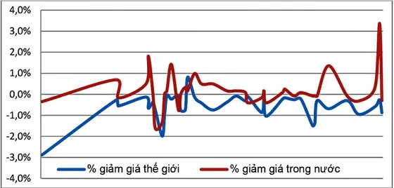 Hình 2: Chênh lệch giá mua/bán và giá vàng trong nước và thế giới