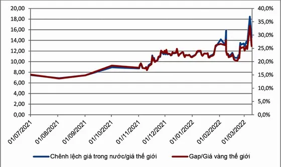 Chênh lệch giá vàng trong nước và thế giới ngày càng trở nên nghiêm trọng cả về giá trị tuyệt đối và tỷ lệ so với giá vàng thế giới (bảng 2 và hình 3). Bằng chứng khoa học từ các nghiên cứu cho thấy, khi chênh lệch lớn sẽ gây tác động tiêu cực lên tỷ giá hối đoái.