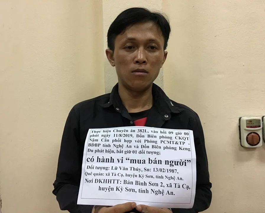 Theo đó, sau một thời gian lập chuyên án đấu tranh, lúc 9 giờ ngày 11-8, tại địa bàn bản Bình Sơn 2 (xã Tà Cạ, huyện Kỳ Sơn), Đồn Biên phòng Cửa khẩu quốc tế Nậm Cắn phối hợp với Đồn Biên phòng Keng Đu, Phòng Phòng chống ma túy và tội phạm (BĐBP Nghệ An) bắt giữ 1 đối tượng đang lừa bán phụ nữ ra nước ngoài. Đối tượng bị bắt là Lữ Văn Thủy (32 tuổi, trú bản Bình Sơn 2, xã Tà Cạ, huyện Kỳ Sơn).