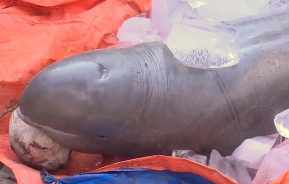 Một số lão ngư trong vùng cho biết, con cá trên có thể là cá heo hoặc cá ông, thường sống ở vùng biển hoặc các đoạn sông gần biển.
