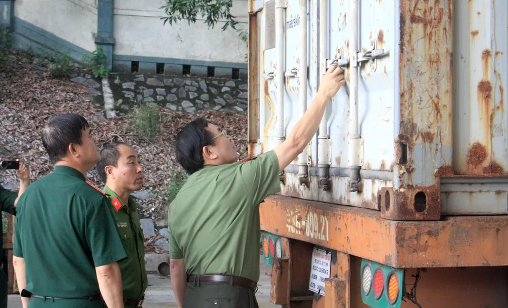 Lực lượng chức năng kiểm tra container hàng nhập khẩu của Công ty Thiên Trường Sử