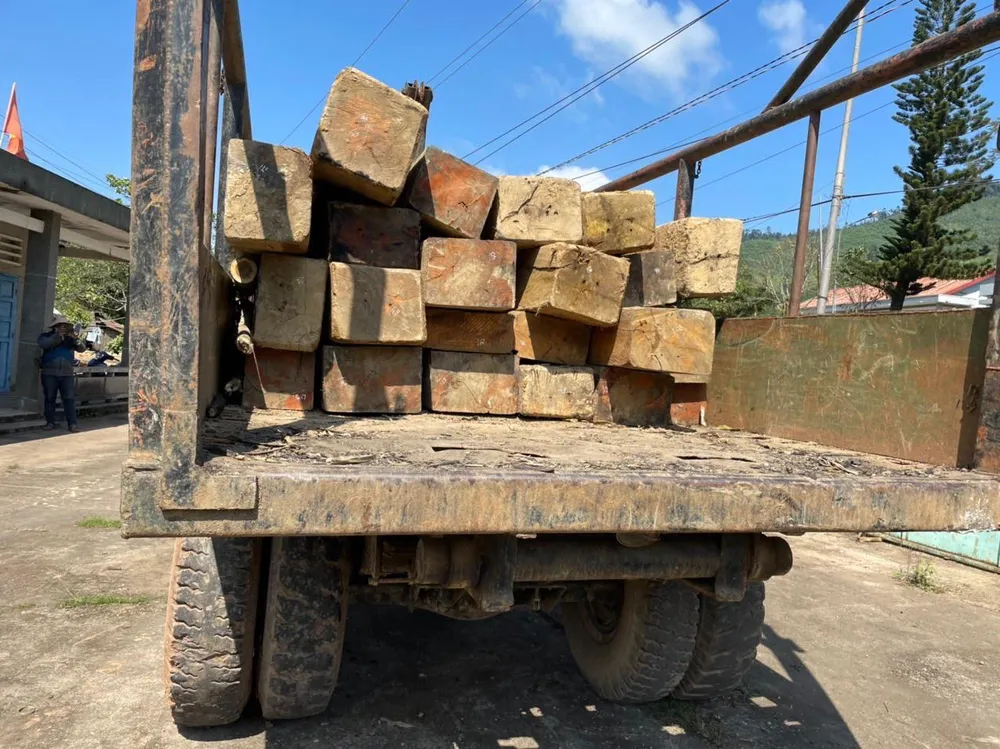 Xe gỗ lậu bị cơ quan công an bắt giữ
