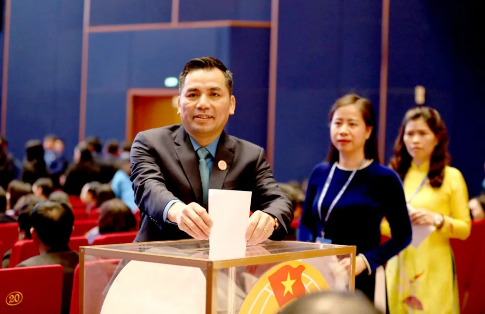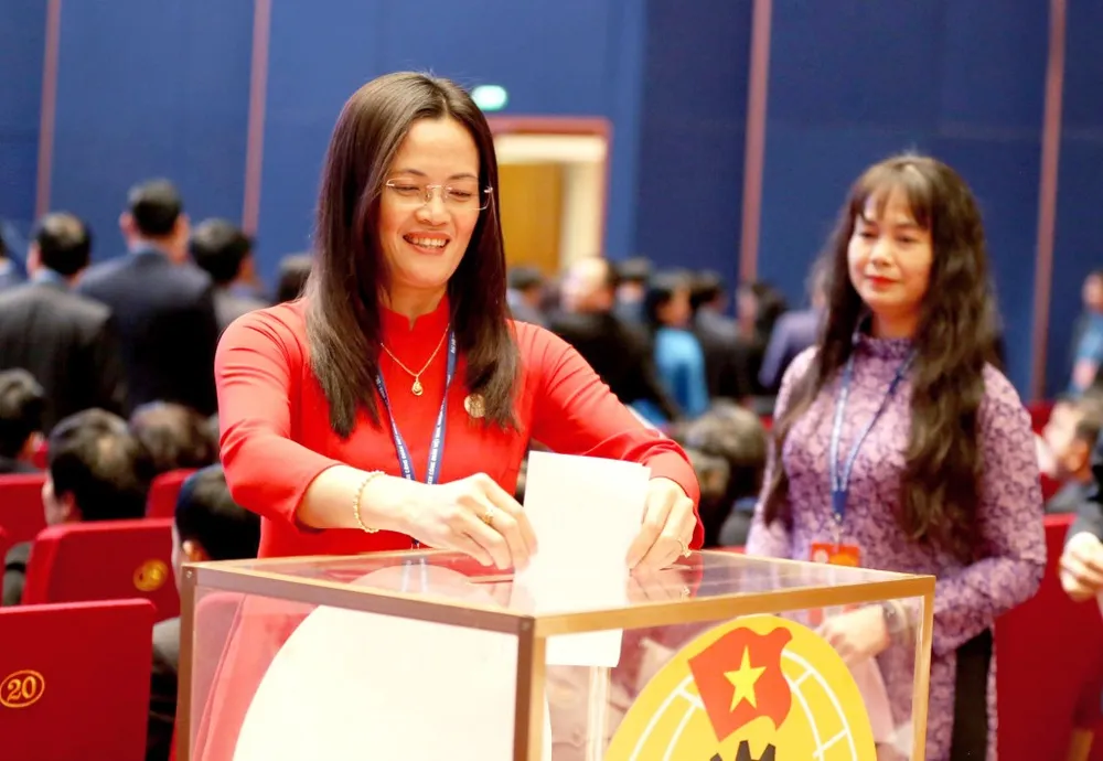 Chủ tịch Tổng Liên đoàn Lao động Việt Nam cùng các đại biểu tiến hành bỏ phiếu bầu Ban Chấp hành Tổng Liên đoàn Lao động Việt Nam khóa mới |