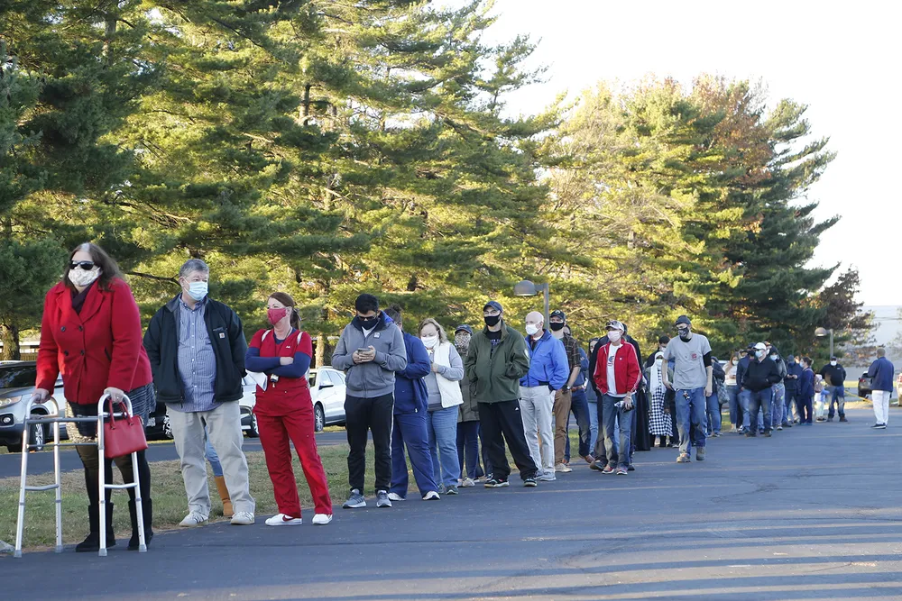 Cử tri xếp hàng bỏ phiếu bên ngoài Nhà thờ Baptist Maranatha, ở Columbus, Ohio. Ảnh: AP