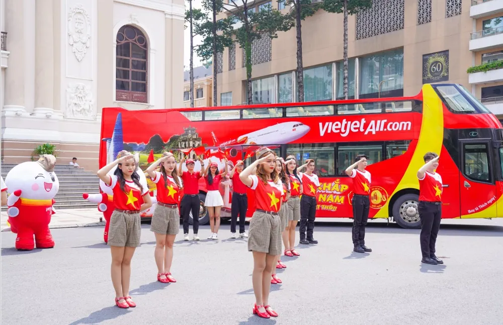 Hôm nay, nhiều du khách cùng Vietjet và xe buýt mang màu sắc đỏ vàng đặc trưng tham quan các điểm đến tại TPHCM như Hội trường Thống Nhất, Bưu Điện Thành phố, Nhà thờ Đức Bà, Nhà hát Thành phố…