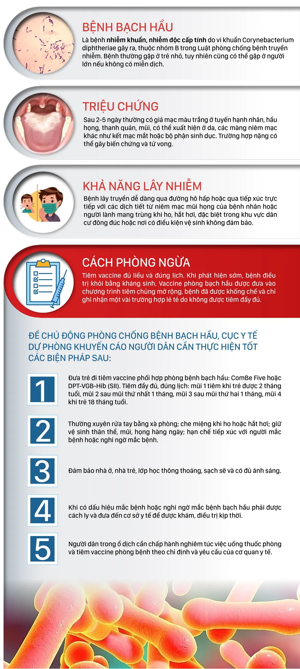 TPHCM là địa phương thứ 2 (sau tỉnh Đắk Nông) có trường hợp mắc bệnh bạch hầu trong năm 2020. Cục Y tế dự phòng - Bộ Y tế khuyến cáo người dân cần thực hiện 5 biện pháp để phòng tránh bệnh.