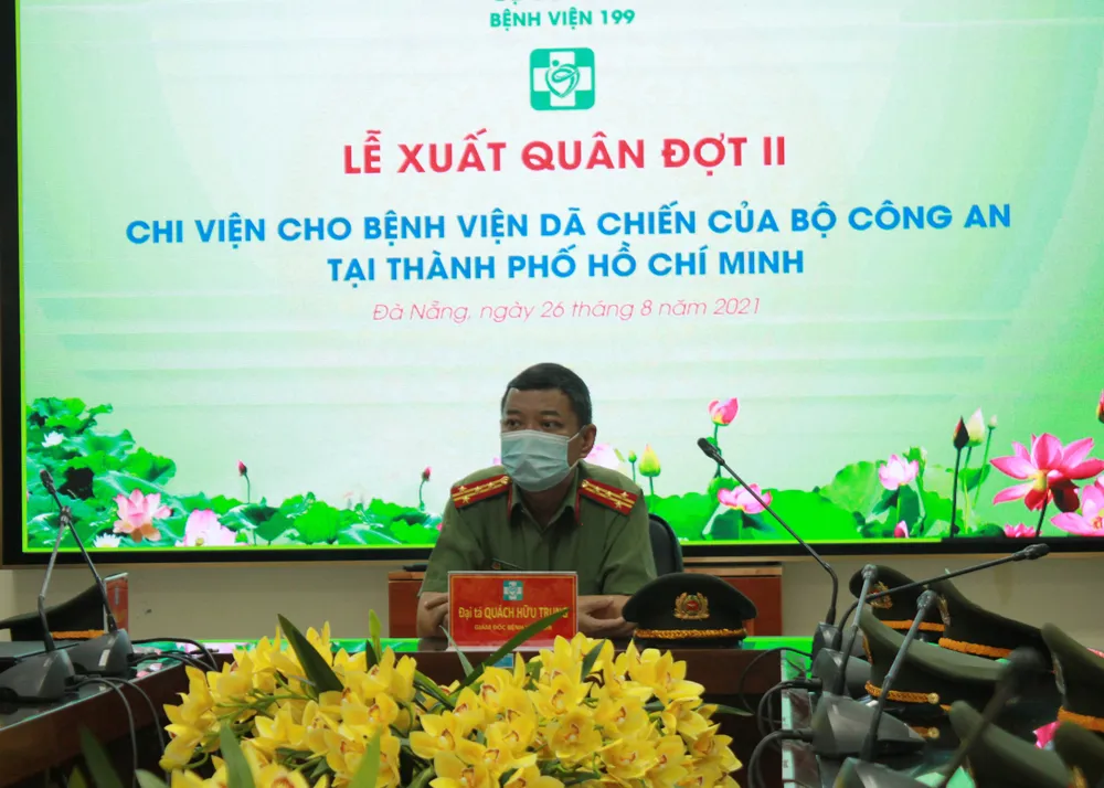 Tại lễ xuất quân, BS Quách Hữu Trung, Giám đốc Bệnh viện 199 khẳng định, cán bộ chiến sĩ, y bác sĩ Bệnh viện 199 luôn là những chiến sĩ xung kích, có mặt ở mọi nơi, mọi lúc, hoàn thành tốt các nhiệm vụ.