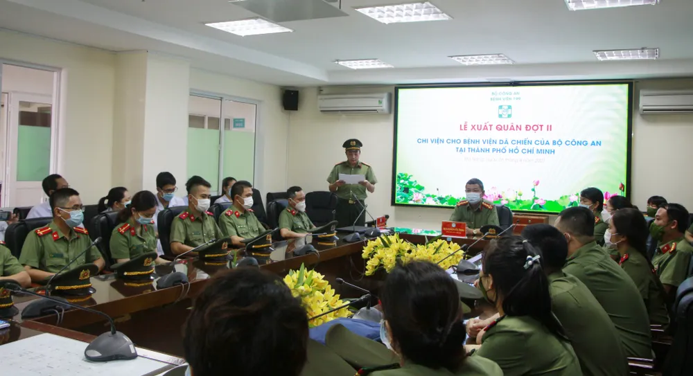 Đoàn y tế Bệnh viện 199 khởi hành ngay sau lễ xuất quân. Ngay khi vào TPHCM, đơn vị có nhiệm vụ phối hợp với Bệnh viện 30-4 đảm trách tiếp nhận điều trị các bệnh nhân mắc Covid-19, tham gia tăng cường chi viện các bệnh viện dã chiến do Bộ Công an thành lập. Bệnh viện 199 đã đưa tổng cộng 70 y bác sĩ vào TPHCM hỗ trợ chống dịch.