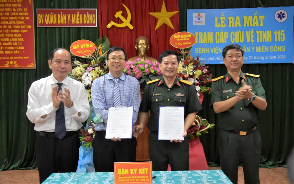 Trong khuôn khổ hợp tác giữa 2 bên, phía Bệnh viện Quân dân y miền Đông hỗ trợ Trung tâm cấp cứu 115 trong việc phát triển công nghệ thông tin từ nguồn nhân lực bệnh viện. Trạm cấp cứu vệ tinh 115 được trang bị 5 xe cứu thương hiện đại, đầy đủ thiết bị y tế chuyên dụng… Quy trình xuất xe nhanh, ngay sau khi nhận điều phối từ tổng đài Trung tâm cấp cứu 115, hoạt động 24/7 sẵn sàng phục vụ công tác cấp cứu bệnh nhân trong thời gian nhanh nhất. Đội ngũ cấp cứu gồm 11 thành viên được tập huấn liên tục, có kiến thức và kỹ năng chuyên nghiệp giúp xử lý mọi tình huống cấp cứu ngoại viện hiệu quả nhất.