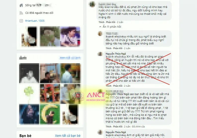 Qua công tác nắm tình hình trên mạng, Phòng An ninh mạng và Phòng chống tội phạm sử dụng công nghệ cao (Công an TP Cần Thơ) đã phát hiện N. dùng tài khoản facebook “Nguyễn Thừa Ngã” tham gia bình luận trên nhiều tài khoản facebook cá nhân khác.
