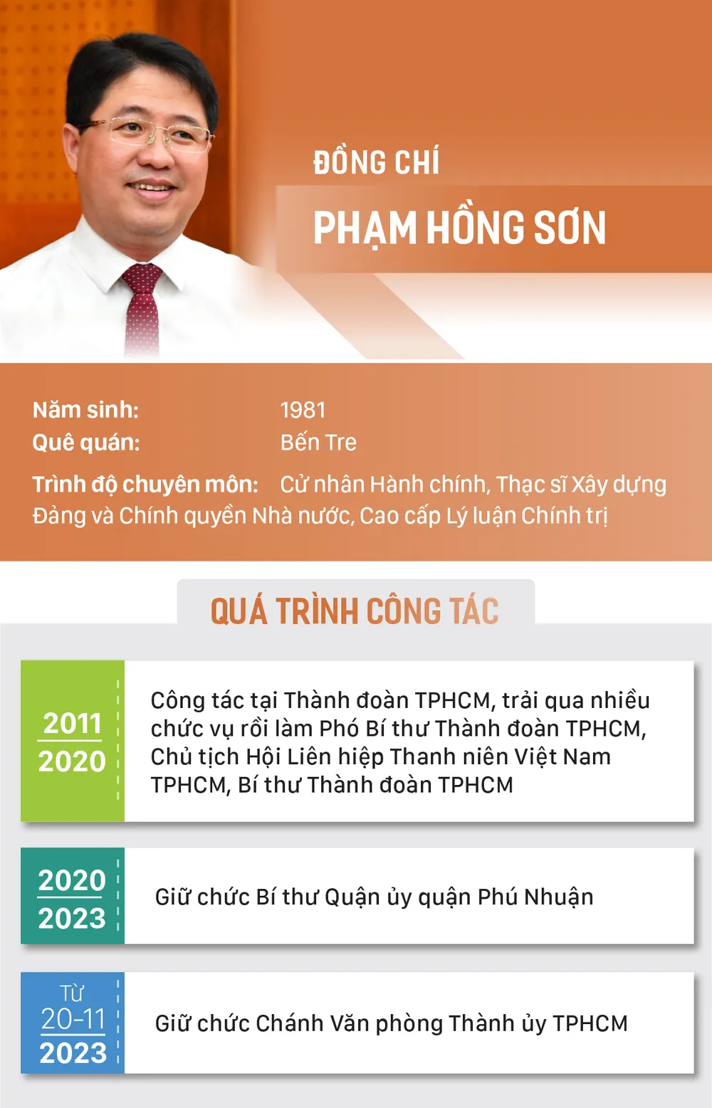 Tại buổi lễ đã công bố quyết định của Ban Thường vụ Thành ủy TPHCM về việc điều động, bổ nhiệm đồng chí Phạm Hồng Sơn, Bí thư Quận ủy quận Phú Nhuận giữ chức Chánh Văn phòng Thành ủy TPHCM.