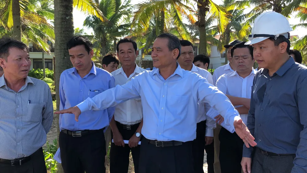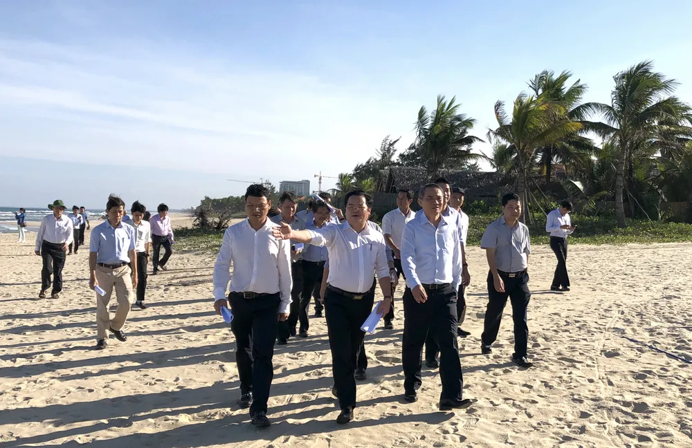 Chiều 5-12, ông Trương Quang Nghĩa, Bí thư Thành ủy Đà Nẵng cùng ông Lê Minh Trung - Phó Chủ tịch HĐND thành phố, ông Hồ Kỳ Minh – PCT UBND thành phố cùng lãnh đạo các Sở ngành, địa phương liên quan đi kiểm tra đột xuất công trình mở lối cho người dân xuống biển trên địa bàn quận Ngũ Hành Sơn.