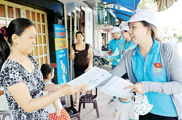 Thanh niên quận 3 phát tờ rơi kêu gọi người dân giữ gìn vệ sinh môi trường xanh sạch đẹp