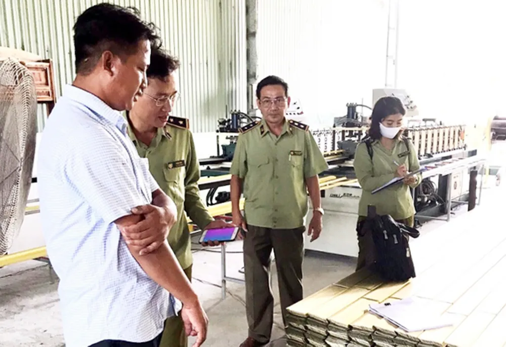 Qua kiểm tra, ngành chức năng phát hiện 10.000 thanh khung trần nhà trong cơ sở Hiền Hòa, có dấu hiệu xâm phạm quyền đối với nhãn hiệu được bảo hộ tại Việt Nam do Công ty CP Công nghiệp Vĩnh Tường đăng ký.