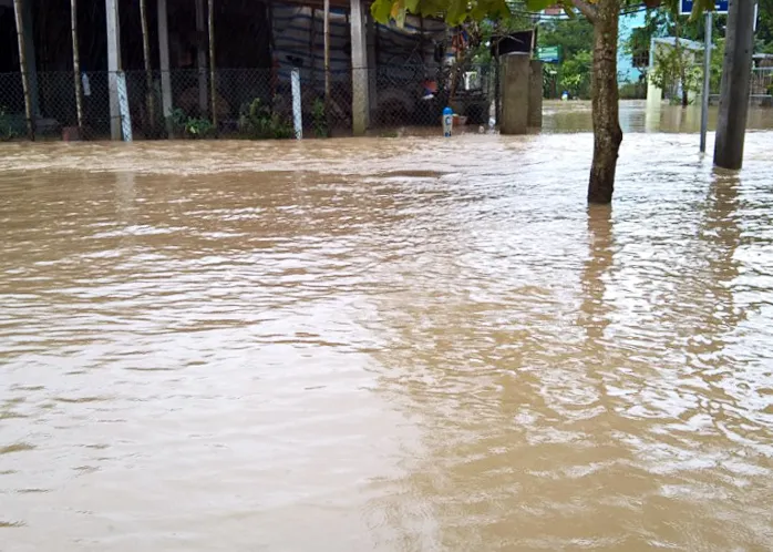 Nhiều địa phương tại huyện Hoài Xuân (Phú Yên) nước vẫn lũ về gây ngập lụt chia cắt.