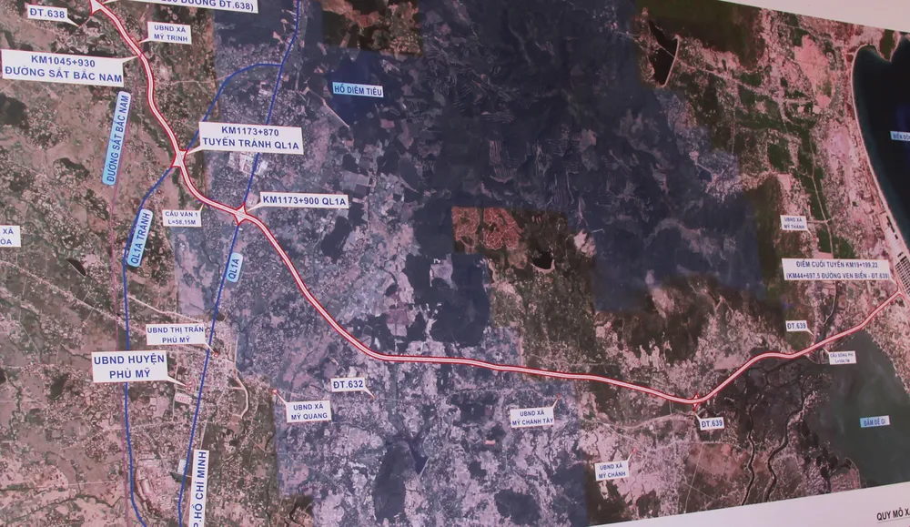 Dự án có điểm đầu giáp với tuyến ĐT638 tại Km 65+300 (nút giao ngã 3 giữa đường ĐT638 và ĐT631 cũ), thuộc thôn Chánh Thuận, xã Mỹ Trinh; điểm cuối giao với đường ven biển (ĐT639) tại Km44+698, thuộc thôn Hương Lạc, xã Mỹ Thành.