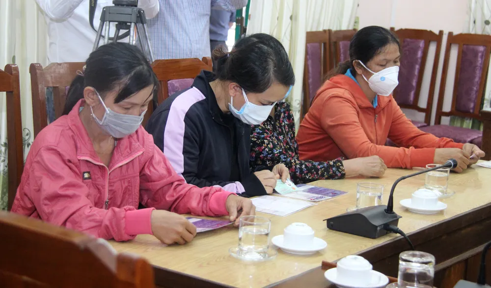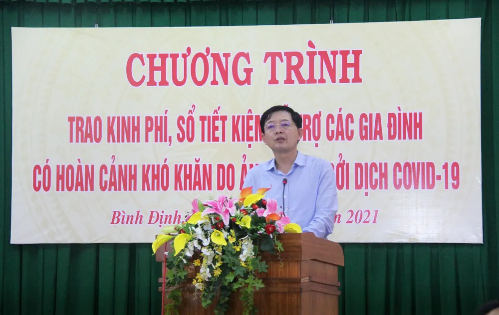 Ông Hồ Quốc Dũng, Bí thư tỉnh ủy Bình Định cùng ông Lâm Hải Giang, Phó Chủ tịch UBND tỉnh đã đến tham dự và trao 14 sổ tiết kiệm và bảng tượng trưng số tiền hỗ trợ cho người dân có hoàn cảnh khó khăn, bị ảnh hưởng bởi dịch Covid-19.
