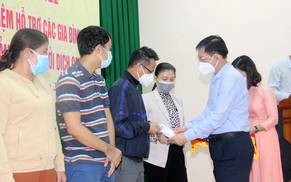 Qua đó, ông Hồ Quốc Dũng trao 14 sổ tiết kiệm (30 triệu đồng/hộ, tổng giá trị 420 triệu đồng) cho 14 hộ gia đình có hoàn cảnh khó khăn, có người thân tử vong do Covid-19. Đây là sổ tiết kiệm để hỗ trợ con em của người dân mất do dịch Covid-19. Trước đó, tỉnh cũng đã hỗ trợ mỗi gia đình có người thân mất do dịch 5 triệu đồng/hộ.