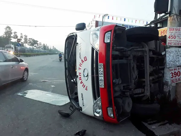 Theo thông tin ban đầu, vào thời gian trên, xe khách loại 24 chỗ ngồi chạy tuyến Bình Dương – Vũng Tàu BKS 51B - 19258 do tài xế Trần Văn Tâm (44 tuổi, quê Trà Vinh) điều khiển, trên đường Thủ Khoa Huân hướng ra quốc lộ 13. Khi đến ngã tư giao nhau với đường Mỹ Phước – Tân Vạn thì tông vào xe container chạy hướng từ Đồng Nai về Bình Dương. Cú tông cực mạnh khiến chiếc xe khách lao về phía trước, lật ngang trước cửa nhà dân, bể nát.