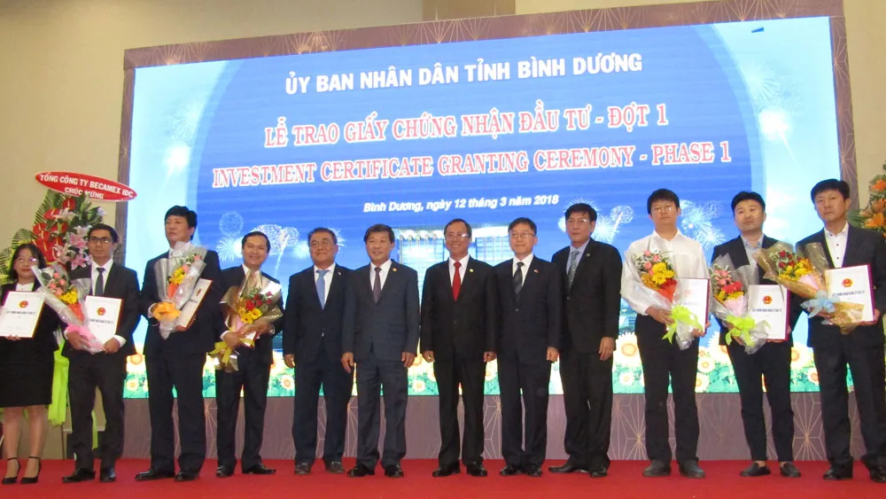 Các dự án được cấp giấy chứng nhận có vốn đầu tư lớn như: dự án kinh doanh dịch vụ logistic, bất động sản công nghiệp do tập đoàn Tài chính Warburg Pincus liên doanh cùng Tổng Công ty Đầu tư và Phát triển Công nghiệp – CTCP Becamex IDC Corp (KCN Bàu Bàng và KCN Mỹ Phước 3) với tổng số vốn 135,2 triệu USD; dự án nhà máy sản xuất, gia công hàng may mặc của Công ty TNHH Apparel Far Eastern KCN VSIP 2 – A với tổng số vốn đăng ký 25 triệu USD; dự án nhà máy công ty TNHH Liang Chi Việt Nam với tổng số vốn đạt gần 6 triệu USD…