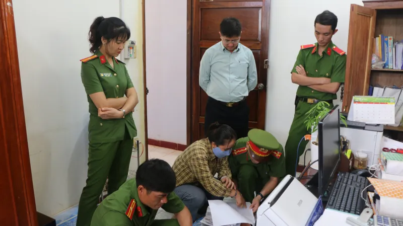 Cùng ngày, Công an tỉnh Bình Phước phối hợp với Viện kiểm sát nhân dân cùng cấp và các cơ quan liên quan thi hành quyết định phê chuẩn khởi tố bị can, lệnh bắt bị can để tạm giam, lệnh khám xét nơi làm việc của bị can.