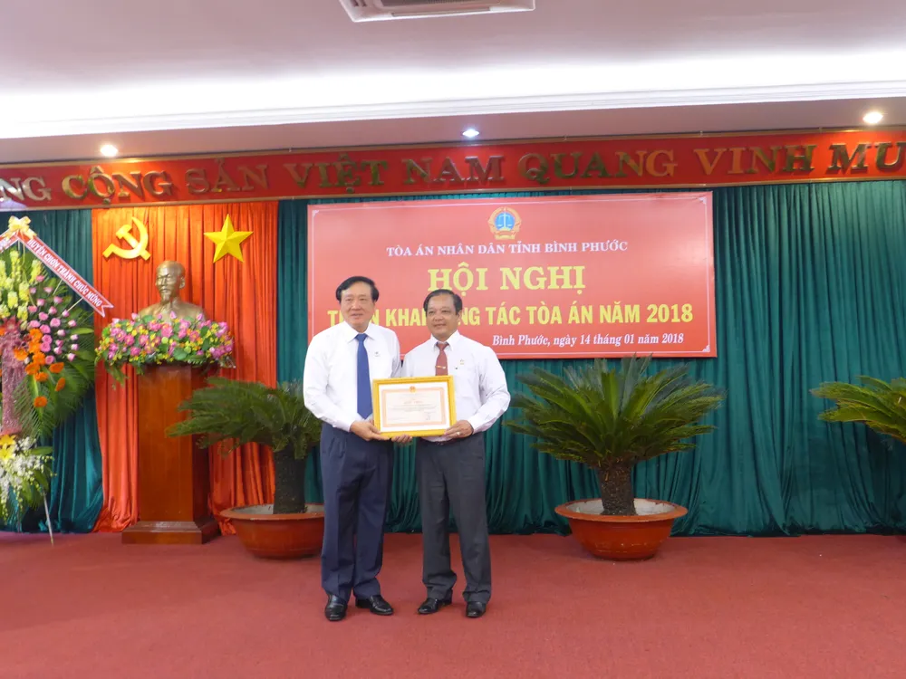 Sáng 14 - 1, TAND tỉnh Bình Phước tổ chức Hội nghị triển khai công tác năm 2018. Tham dự hội nghị có Bí thư Trung ương Đảng, Chánh án TAND Tối cao Nguyễn Hòa Bình; Bí thư Tỉnh ủy tỉnh Bình Phước Nguyễn Văn Lợi; Chủ tịch UBND tỉnh Bình Phước Nguyễn Văn Trăm; cùng đại diện các sở, ban ngành liên quan, lãnh đạo TAND 2 cấp tỉnh Bình Phước.