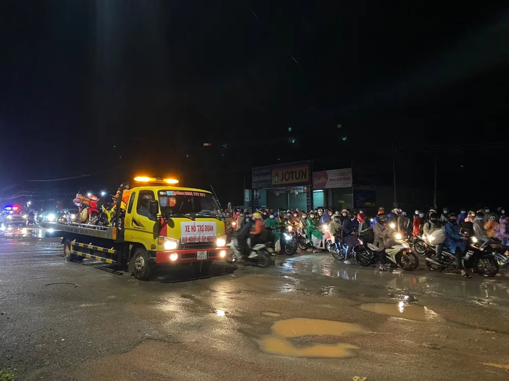 Công an tỉnh Bình Phước hỗ trợ người dân từ TPHCM về Tây Nguyên qua địa bàn tỉnh Bình Phước