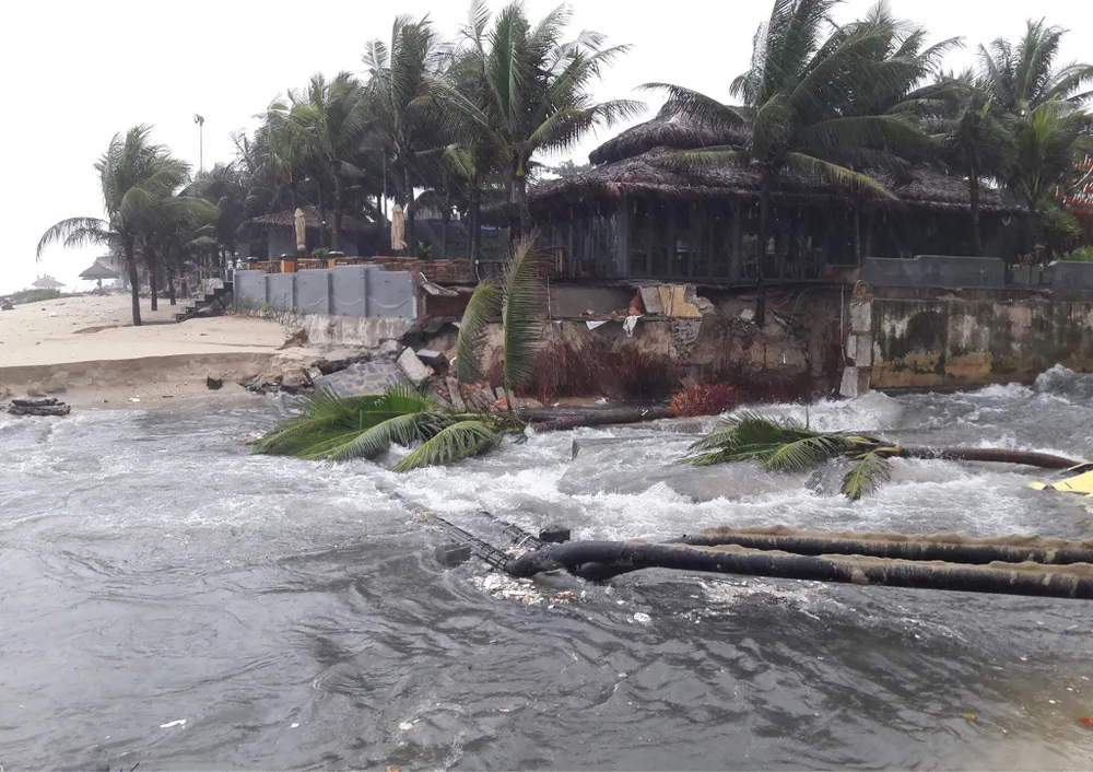 Tại TP Đà Nẵng, dọc theo các tuyến đường Hoàng Sa, Võ Nguyên Giáp, Trường Sa nước biển đã xâm thực vào sát các nhà hàng. Một số khu vực như bãi tắm Sao Biển (quận Ngũ Hành Sơn), bãi tắm công cộng Sơn Thủy (quận Ngũ Hành Sơn) hầu như ngưng hoạt động. Thậm chí, tại bãi biển công cộng Sơn Thủy nhiều đoạn có nguy cơ đổ sập do sóng biển tác động. Cùng với đó, những hàng dừa trong các khu nghỉ dưỡng ven biển cũng đã bị sóng cuốn trôi trơ gốc.