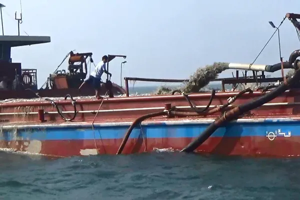 Xà lan bơm cát san lấp tại Khu đô thị quốc tế Đa Phước