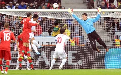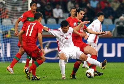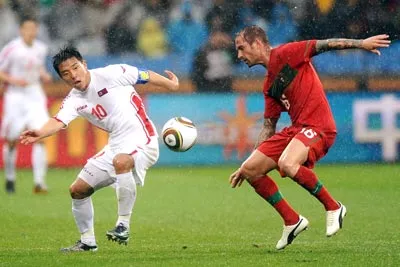 Pha đánh đầu chạm cột dọc của trung vệ Ricardo Carvalho ở phút thứ 5 của trận đấu đã báo hiệu một ngày khá vất vả cho hàng phòng ngự CHDCND Triều Tiên. Thế nhưng, ngược với những gì người ta hình dung, đội bóng đến từ châu Á lại tạo được cơ hội ăn bàn nhiều hơn Bồ Đào Nha trong khoảng 20 phút đầu tiên của hiệp 1. Nếu ghìm bóng và chỉnh thước ngắm chuẩn hơn một chút, tiền đạo Jong Tae Se hoặc hậu vệ Ji Yun Nam đã có thể sút tung lưới thủ thành Eduardo ít nhất 2 lần.