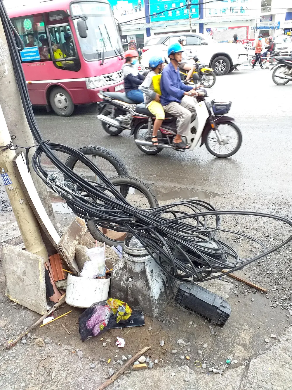 Tại cột điện trên lề đường Lê Văn Việt (gần ngã tư Thủ Đức, thuộc địa bàn phường Hiệp Phú, quận 9, TPHCM) có một bó dây điện cuộn dưới chân cột điện gây nhếch nhác mất mỹ quan đô thị và nguy hiểm cho người qua lại.