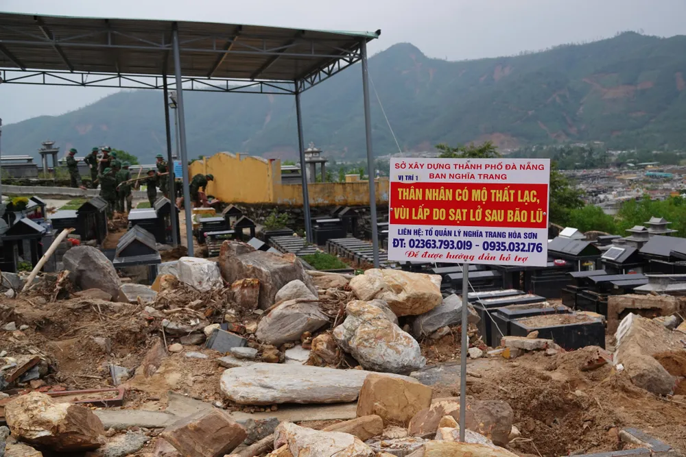 Theo ông Nguyễn Thúc Dũng, Phó Chủ tịch UBND huyện Hòa Vang, Trưởng Ban chỉ đạo xử lý sự cố sạt lở tại Nghĩa trang Hòa Sơn, hiện có hơn 800 người thuộc Sư đoàn 315 (Quân khu 5), Trung đoàn 971 (Bộ chỉ huy Quân sự TP Đà Nẵng) và các đơn vị trực thuộc đã tổ chức lực lượng, phương tiện, cơ động tiếp tục giúp dân khắc phục sạt lở tại Nghĩa trang Hòa Sơn (huyện Hòa Vang, TP Đà Nẵng). Với 610 ngôi mộ, Ban Nghĩa trang cắm biển cùng số điện thoại để người dân có mộ người thân bị vùi lấp liên hệ để nhận được sự hỗ trợ. Với những ngôi mộ vô danh, lực lượng chức năng tìm và bố trí, sắp xếp lại tại chỗ, nếu vị trí không đảm bảo sẽ đề xuất chuyển vị trí phù hợp.
