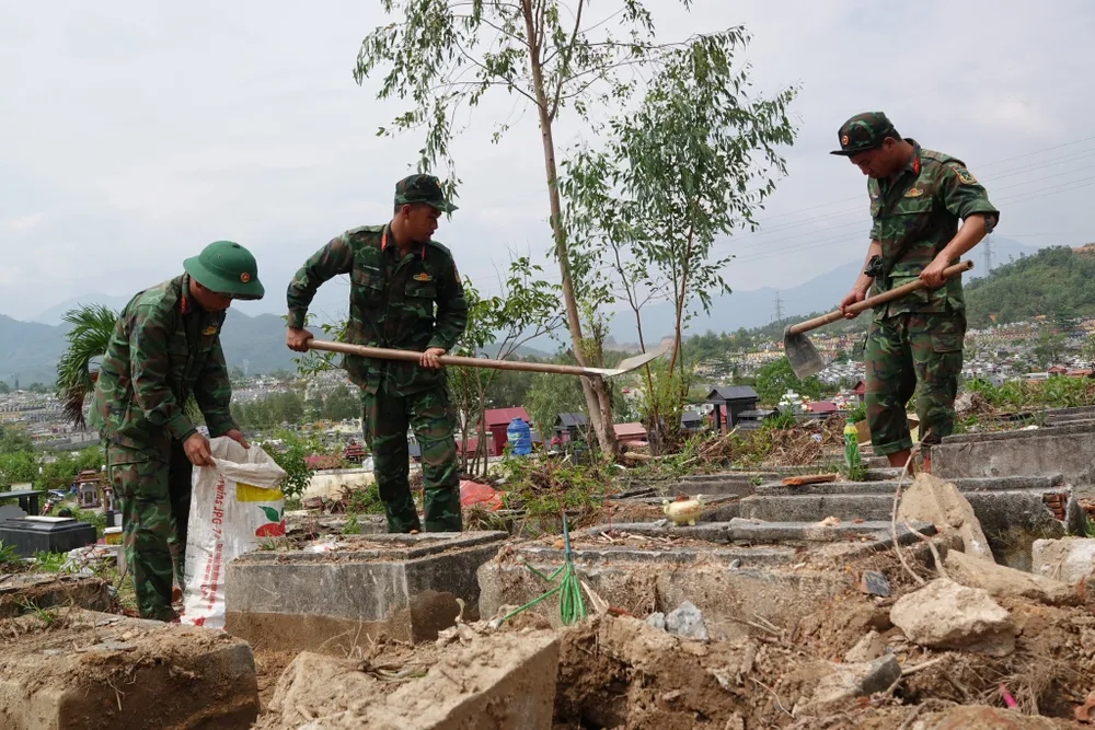 Theo thiếu tá Trần Minh Thảo, Phó trung đoàn trưởng, Tham mưu trưởng Trung đoàn 971 (Bộ Chỉ huy Quân sự TP Đà Nẵng), đã giúp dân thì không ngại khó. Xe cơ giới không thể vào bên trong nghĩa trang nên phải bỏ đất đá vào bao tải rồi vác ra ngoài. Hầu hết mọi công đoạn phải làm thủ công nhưng những người lính cảm thấy nhẹ lòng khi giúp dân tìm lại được mộ phần.