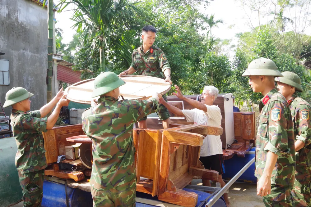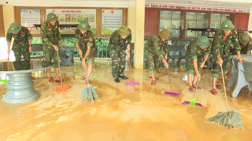 Đồng thời, các cán bộ, chiến sĩ cũng đã trực tiếp đến tận các hộ gia đình có người già, neo đơn, gia đình chính sách để động viên, giúp đỡ kịp thời khắc phục hậu quả sau mưa lũ, dọn dẹp bùn đất, lau rửa nhà cửa...