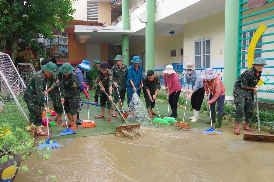 Nhà trường gấp rút huy động nhân lực khắc phục hậu quả mưa lũ, nhưng với lượng bùn đất, rác thải quá lớn do đó phải nhờ đến sự hỗ trợ từ phía Trung đoàn 6, Ban Chỉ huy Quân sự thị xã Hương Thủy và lực lượng dân quân địa phương.
