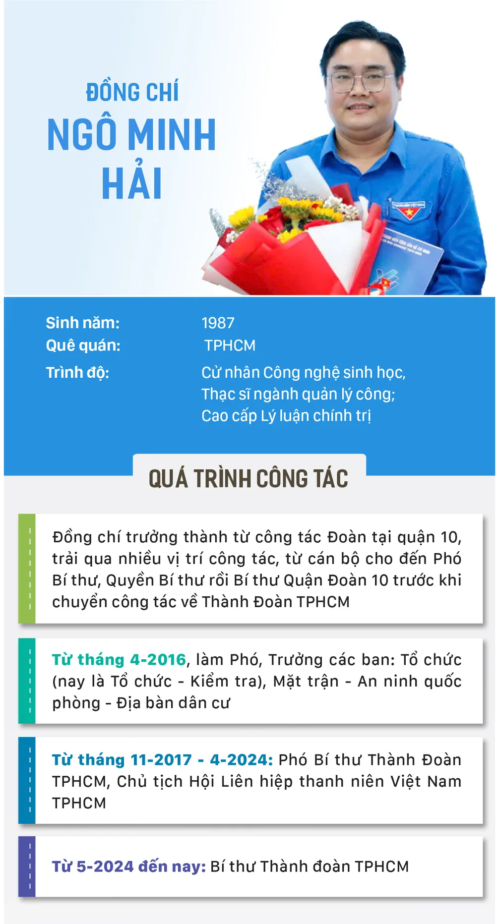 Theo đó, các đồng chí: Ngô Minh Hải, Ủy viên Ban Thường vụ Trung ương Đoàn, Bí thư Thành đoàn TPHCM; Nguyễn Thành Trung, Phó Chủ tịch Thường trực Ủy ban MTTQ Việt Nam TPHCM; Trần Văn Bảy, Chánh Thanh tra TPHCM; Võ Khắc Thái, Chủ tịch LĐLĐ TPHCM, được chỉ định tham gia Ban Chấp hành Đảng bộ TPHCM nhiệm kỳ 2020-2025.