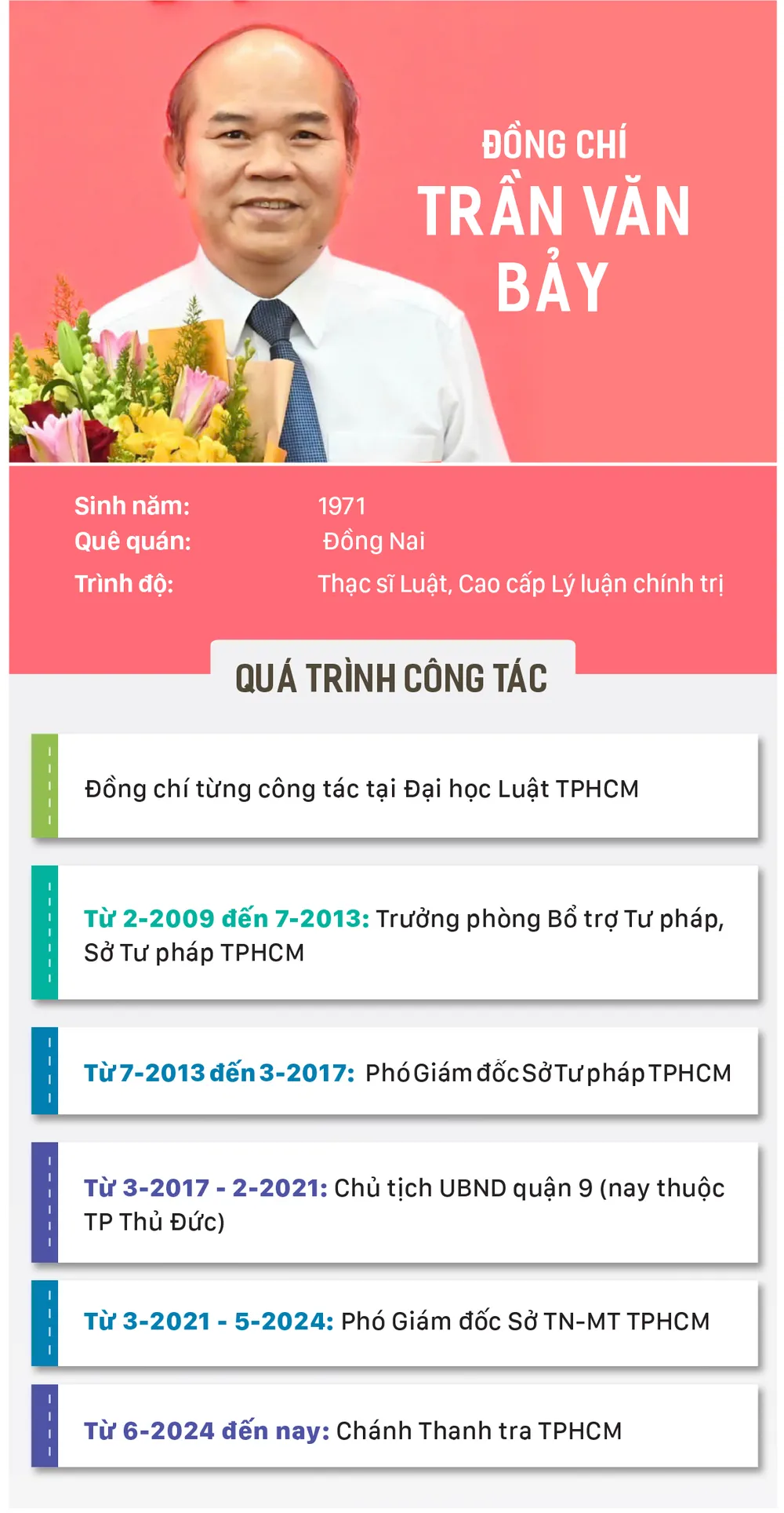 Chánh Thanh tra TPHCM cũng khẳng định, mỗi đồng chí nhận nhiệm vụ hôm nay đều nhận thức rõ ngay từ bây giờ tinh thần trách nhiệm với Đảng bộ và nhân dân thành phố. “Chúng tôi tiếp thu đầy đủ tình cảm gửi gắm, sự chỉ đạo của đồng chí Bí thư Thành ủy TPHCM và luôn nỗ lực rèn luyện, sống làm việc ngay ngắn, nghiêm túc, hết lòng hết sức, không phụ sự tin tưởng của các đồng chí”. Đồng chí cũng cam kết trên mỗi cương vị công tác sẽ nỗ lực hết sức đóng góp vào nhiệm vụ chung, góp phần vào sự phát triển của thành phố.