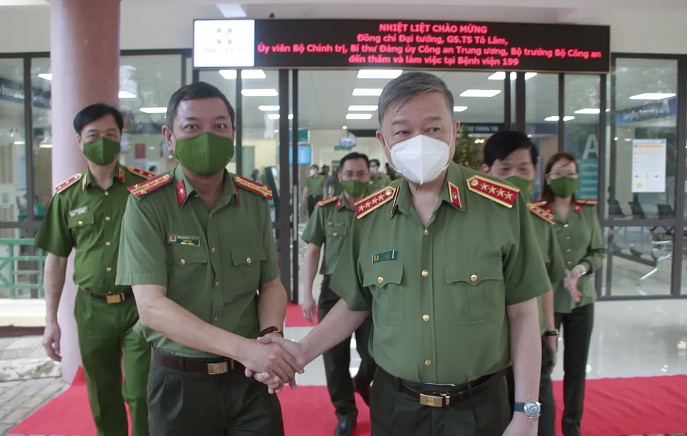 Bệnh viện 199 là 1 trong những đơn vị tuyến đầu trong cuộc chiến phòng chống dịch vừa qua, Đại tướng Tô Lâm cho hay, từ kinh nghiệm ở TP Đà Nẵng, các chiến sĩ hỗ trợ tích cực cho các đơn vị thuộc Bộ Công an ở phía Nam, các trại giam... Đối với y tế, Đảng ủy Công an Trung ương đã thông qua Nghị quyết phải ưu tiên công tác nâng cao trình độ chuyên môn, y tế để chăm sóc sức khỏe cho lực lượng và nhân dân.