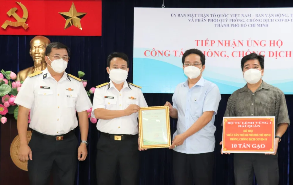 Trước đó, ngày 14-9, 10 tấn gạo đầu tiên của Bộ Tư lệnh Vùng 1 Hải quân vận chuyển tới TPHCM được trao tặng cho người dân nghèo, người gặp khó khăn trên địa bàn quận 4.