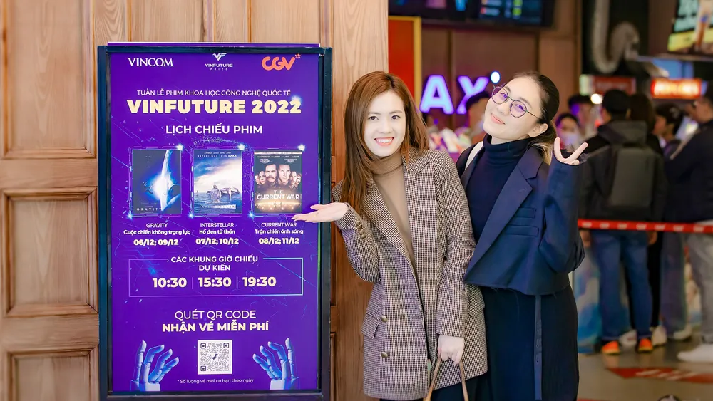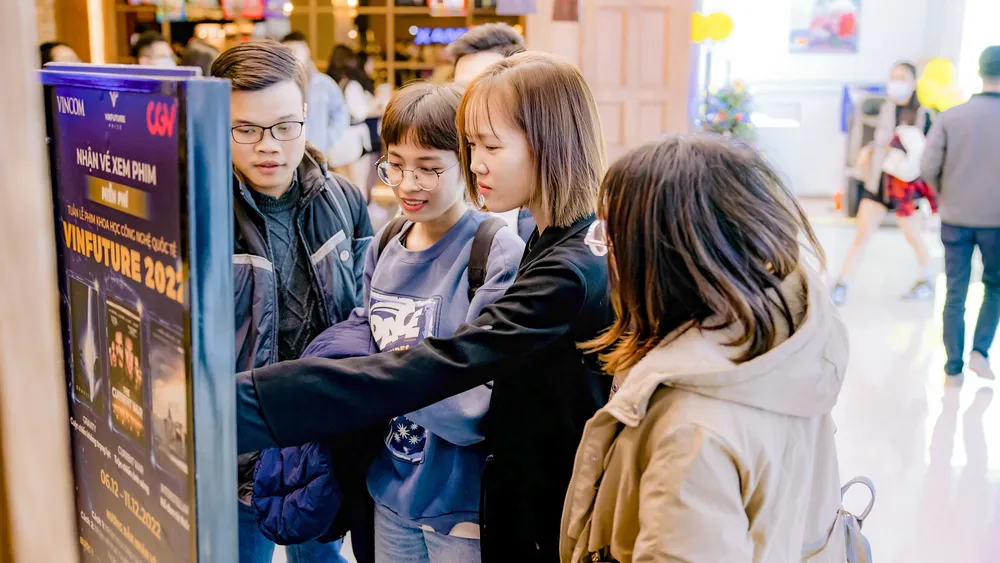 | Tuần lễ phim Khoa học Công nghệ do Quỹ VinFuture phối hợp cùng Hệ thống Trung tâm thương mại Vincom và Hệ thống rạp CGV Cinemas tổ chức. Tổng cộng sẽ có 25.000 vé xem miễn phí dành cho các fan điện ảnh. Khán giả có thể nhận vé miễn phí trực tiếp khi tới rạp hoặc có thể lựa chọn đăng ký vé online thông qua website/ứng dụng CGV với nhiều suất chiếu mỗi ngày tại 37 cụm rạp CGV ở các TTTM Vincom trên toàn quốc. - Ngày 17-12: Giao lưu cùng Hội đồng Giải thưởng và Hội đồng Sơ khảo VinFuture; - Ngày 17-12: Diễn thuyết truyền cảm hứng “Đổi mới HIỆN TẠI, Kiến tạo TƯƠNG LAI”;