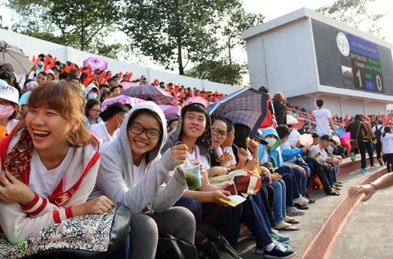 Các CĐV mãn nhãn trước màn trình diễn của các ngôi sao Việt Nam và Thái Lan.